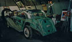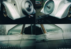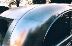 Body manufacture is carried out in the traditional way; metal is cut from pattern, hand beaten into a rough shape and then hand wheeled on an English wheel to achieve smooth, faultless panels. The next panel is then TIG welded to the first, the joint is planished until hardly visible. Bob uses a similar method to make the shaped header tanks seen on Radiators and Intercoolers on our website.
