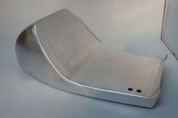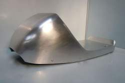 Body manufacture is carried out in the traditional way; metal is cut from pattern, hand beaten into a rough shape and then hand wheeled on an English wheel to achieve smooth, faultless panels. The next panel is then TIG welded to the first, the joint is planished until hardly visible. Bob uses a similar method to make the shaped header tanks seen on Radiators and Intercoolers on our website.